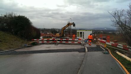 Kurz vor der ersten Folgemessung sind aufgrund der starken Niederschläge Deformationen aufgetreten, welche Risse mit bis zu 10cm Höhenversatz im Strassenbelag hervorgerufen haben! In der Folge wurde die Strasse für den Verkehr gesperrt und die Wasserversorgung unterbrochen. Die ersten 2 Wochen (23.11. - 04.12.2015) wurde zwei Mal wöchentlich gemessen, danach konnte auf eine wöchentliche Kontrolle reduziert werden. Um die Weinbergstrasse nach deren Öffnung an Weihnachten weiterhin im Auge zu behalten, wurden auch während den Festtagen (24. + 29.12.2015) Messungen durchgeführt.