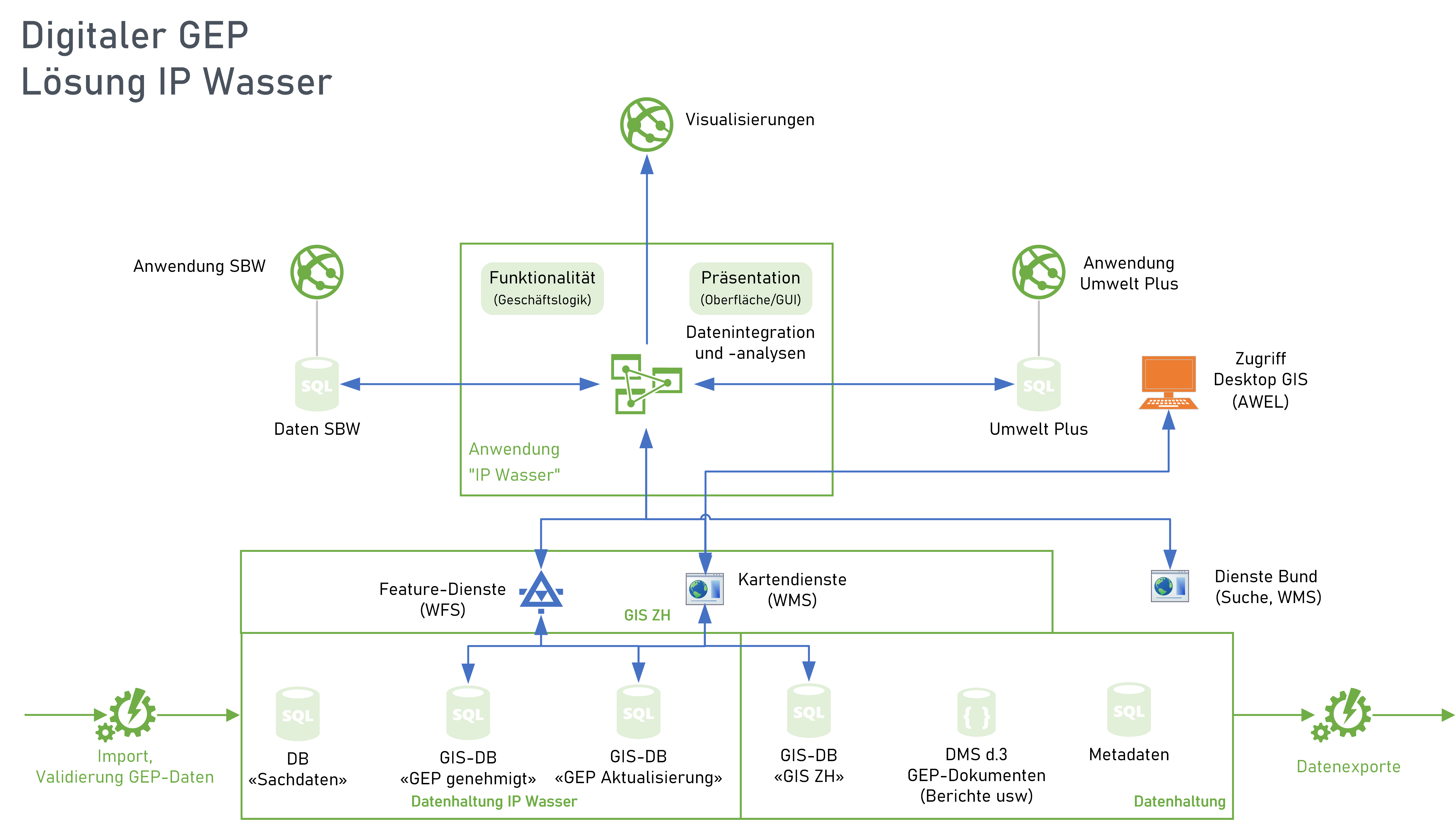 Aus dem übergeordneten Auftrag zur Erstellung der Kantonalen Geodatenmodelle (KGDM) ergaben sich für die Sektion Siedlungsentwässerung des AWEL Kanton Zürich grundsätzliche Fragen zum künftigen Informationsmanagement der Daten zum generellen Entwässerungsplan (GEP-Daten).
